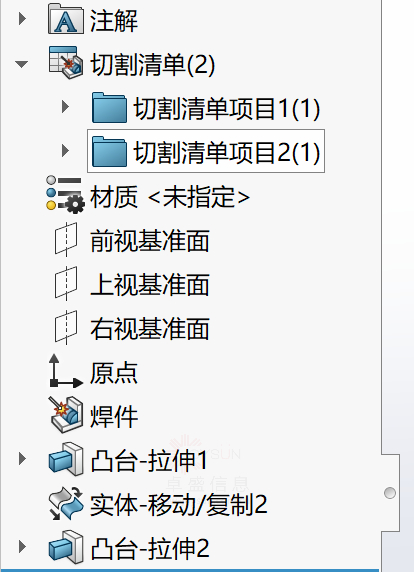 在零件中,将多实体创建切割清单,在切割清单中定义每个实体的材料和属性。